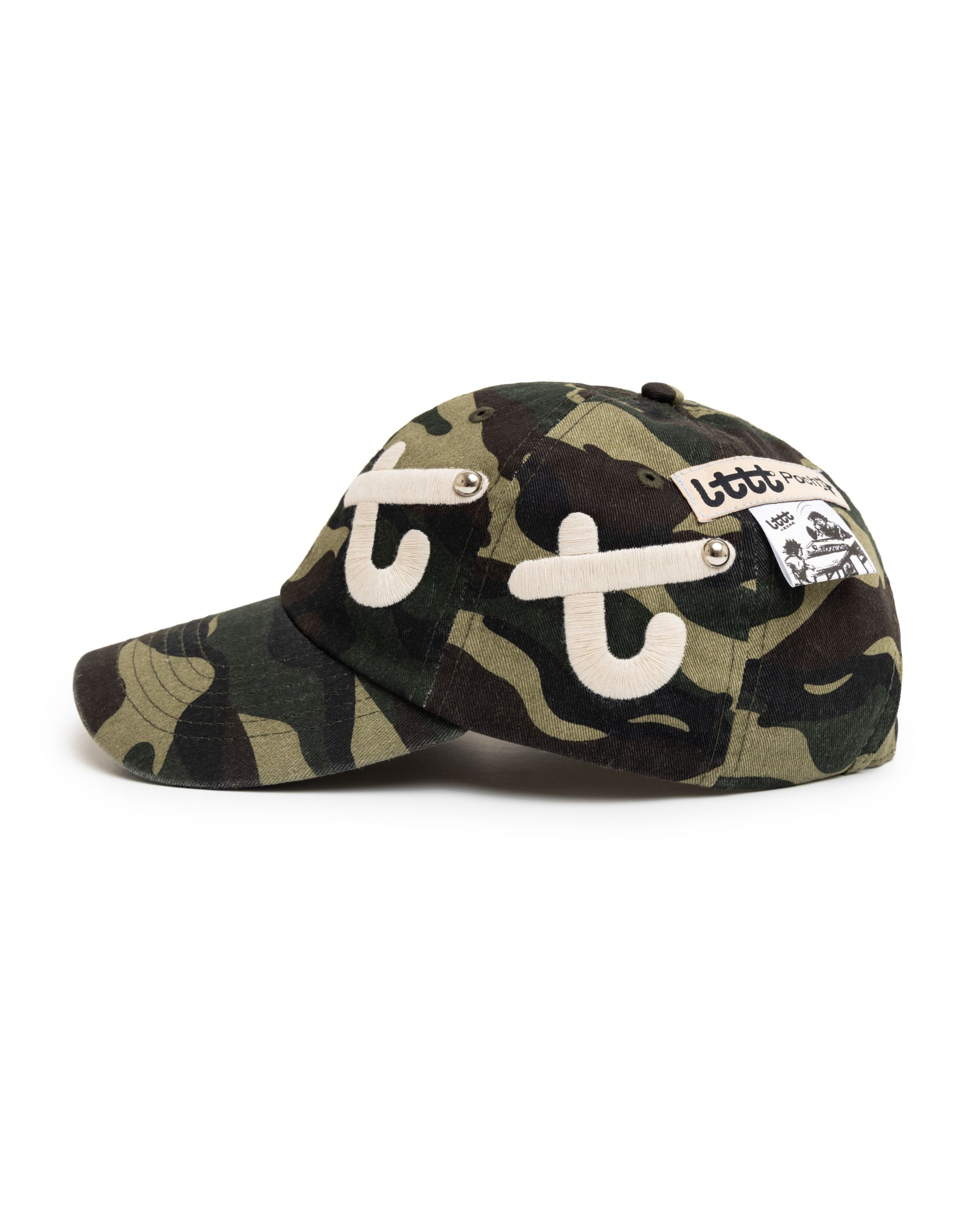 LTTT - eternal little tokyo table tennis logo has been deconstructed and upgraded by Gurina! Magnified embroidery across 3/4 of your head cannot be missed. Shiny studs resemble ping pong balls in flight and increase tactile satisfaction. LTTT/Poche woven label, mid-game scenario label, and tail label <3 one size and adjustable. :)