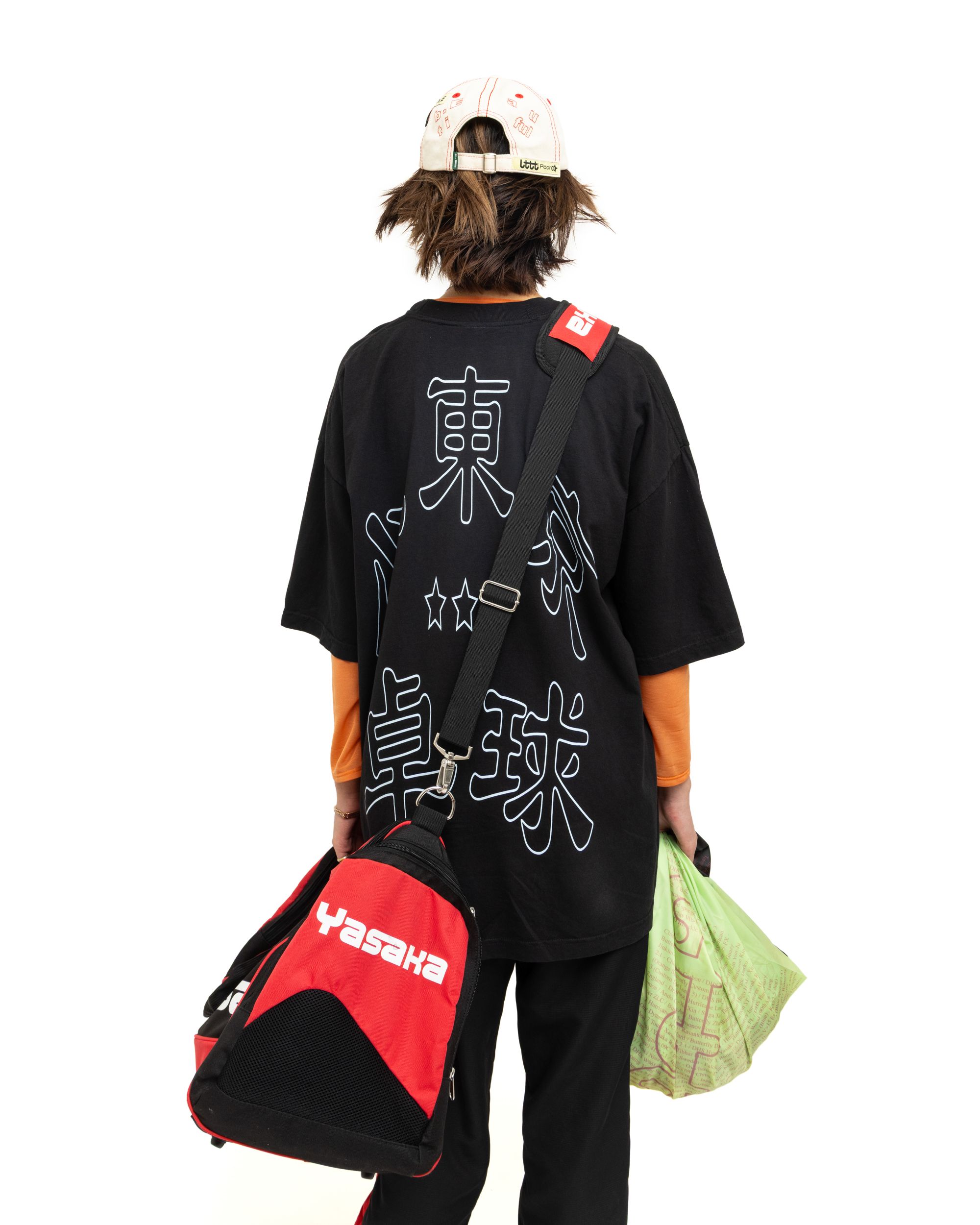 Little Tokyo Table Tennis and b.Eautiful 100% cotton tshirt. 6.7 oz made in LA. long pip forehand/backhand blowfish. double logo. jtta/lttt + phiten balance. please refer to size guide!