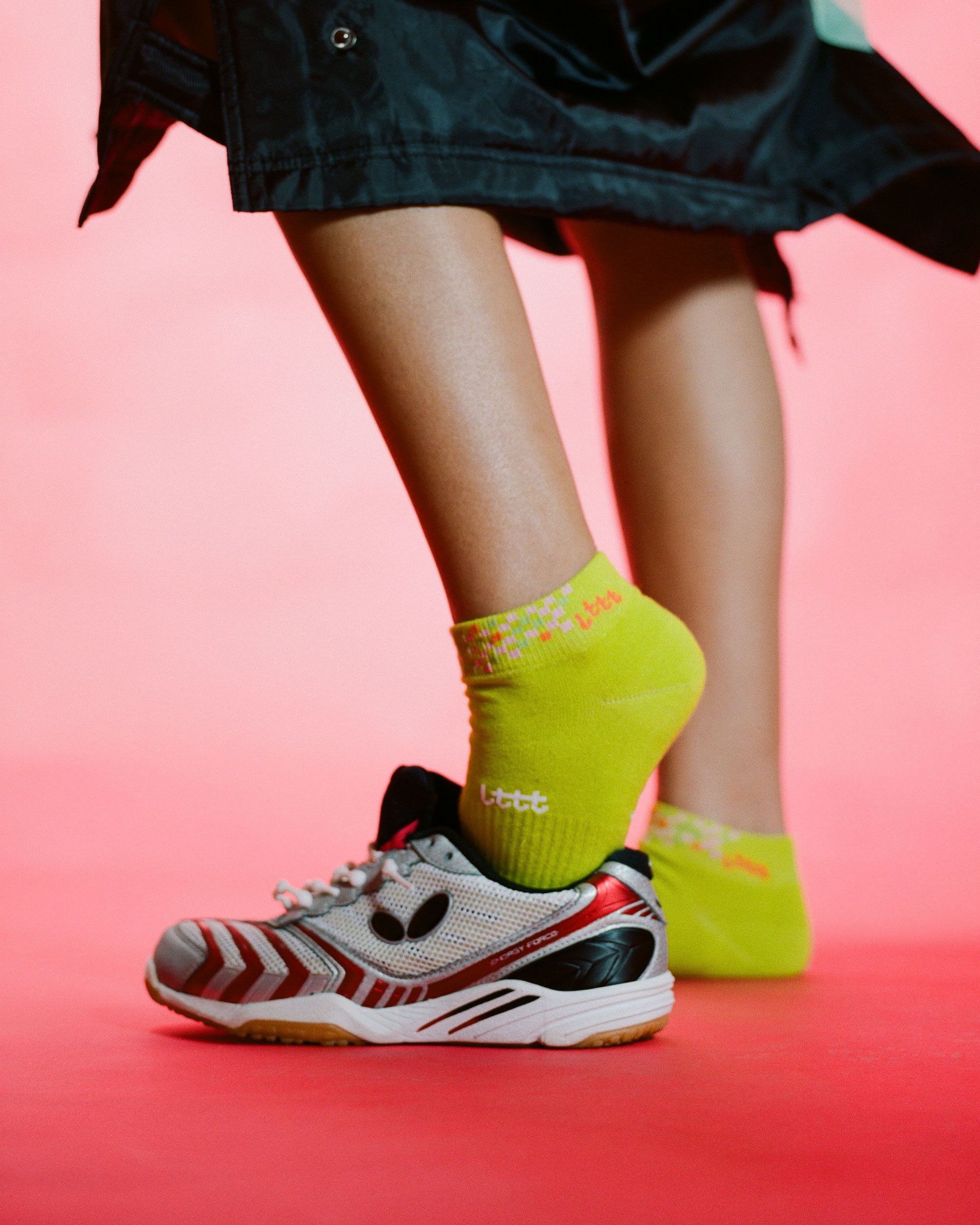 Shuffle socks - cotton/poly blend in four different styles! Mix and match colors if you are fun, or keep them separated if you are serious. Best for playing table tennis, but can be worn with non-table tennis shoes if necessary. Approximate sizing: M 22-25 cm. / L 25-28 cm.