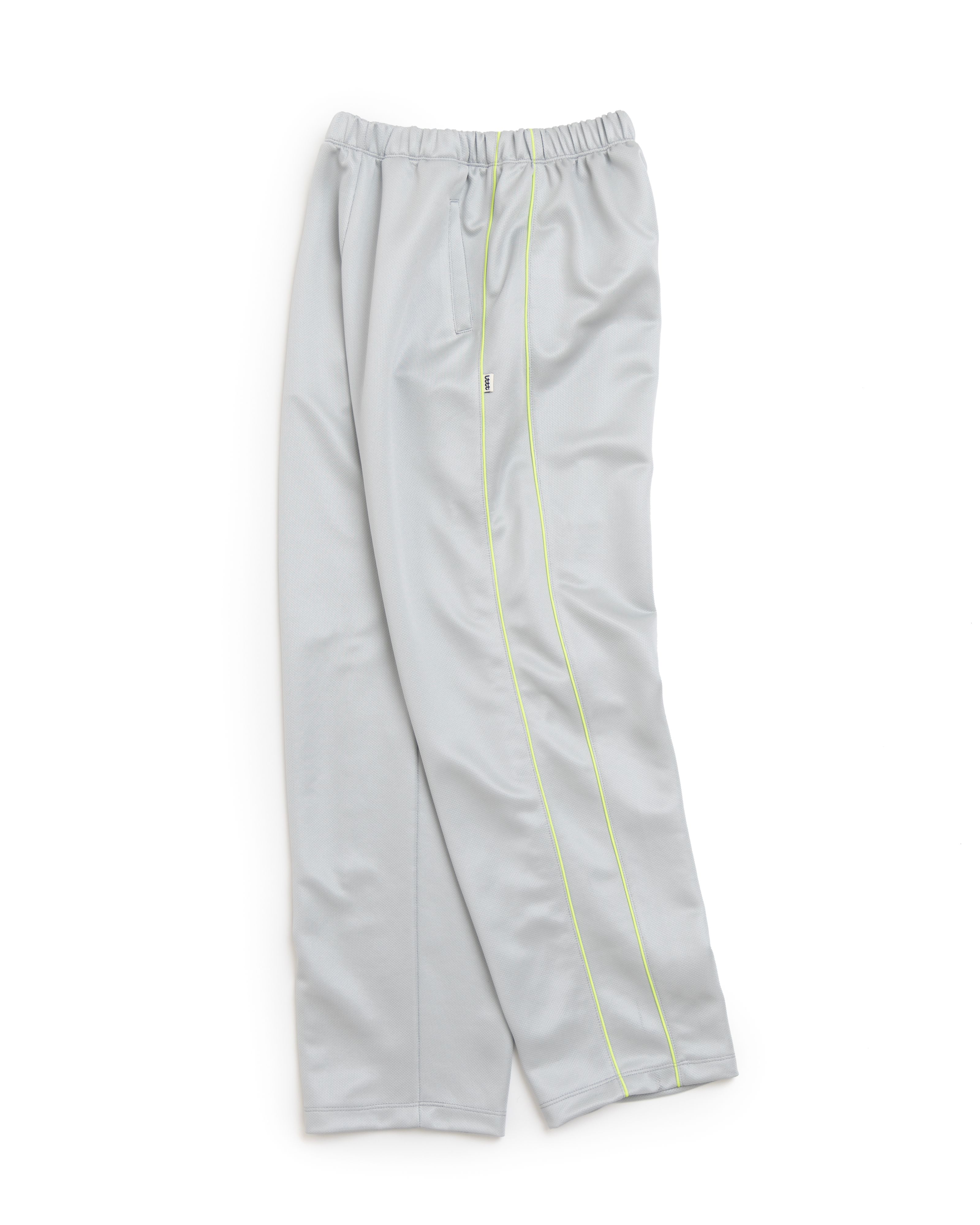 Little Tokyo Table Tennis training pant. a pant for before and after. 262 grams per square meter / quick dry / japan made polyester. double piping from hips to ankles. a long inseam for satisfying sweat pant cuff ++++ metallic drawstring for additional tension.